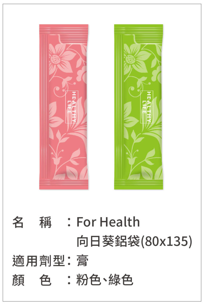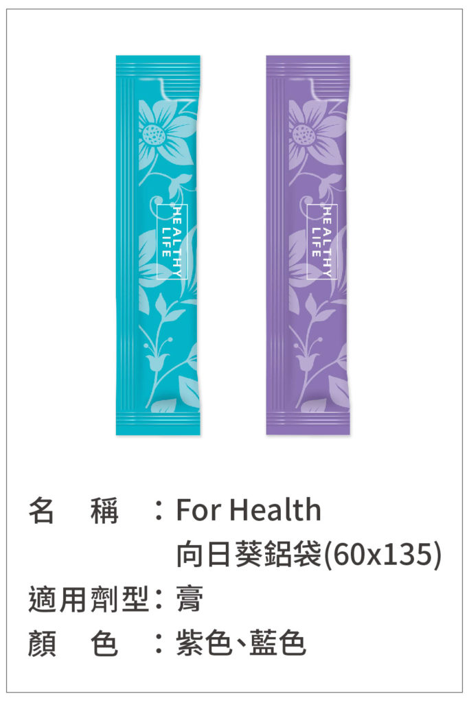 針對不同劑型可提供不同尺寸的鋁袋,供您選擇,可依照您的需求,設計出獨一無二的客製化鋁袋,可自行提供設計檔案,逢興將協助您做出絕無僅有的產品鋁袋,襯托出產品品質。